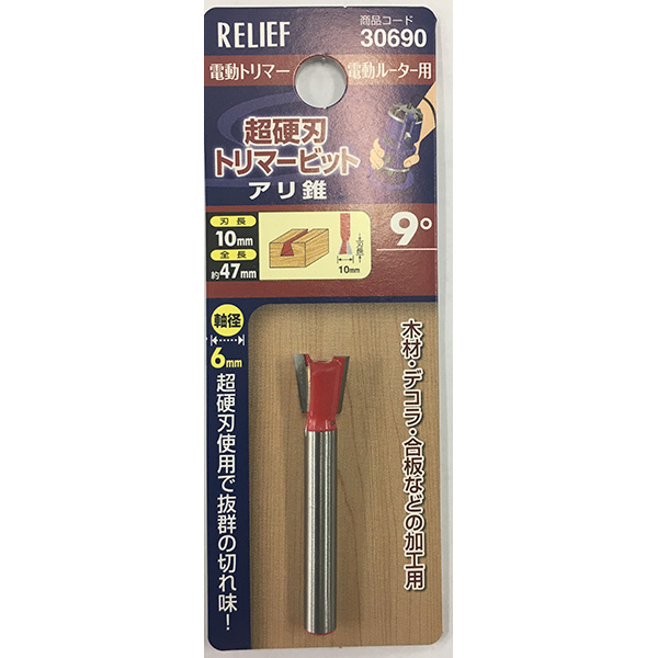 イチネンアクセス:超硬刃トリマービット アリ錐 9° φ6mm軸 30690 イチネンアクセス 30690 トリマービット アリ錐 9°