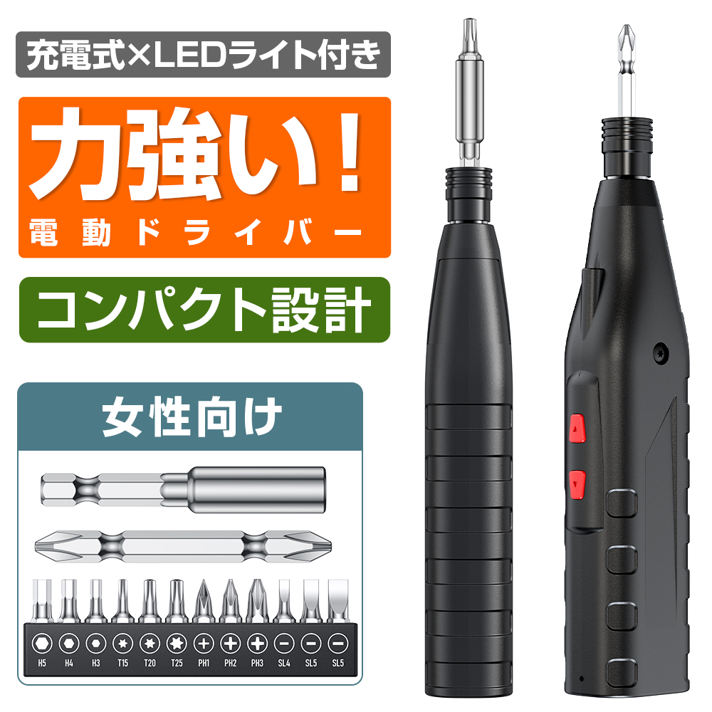 電動ドライバー 小型 セット 充電式 ビット 超軽量 コードレス 電動 ドライバー ドリルドライバー 電動ドライバーセット コンパクト DIY 磁石付き 初心者向け