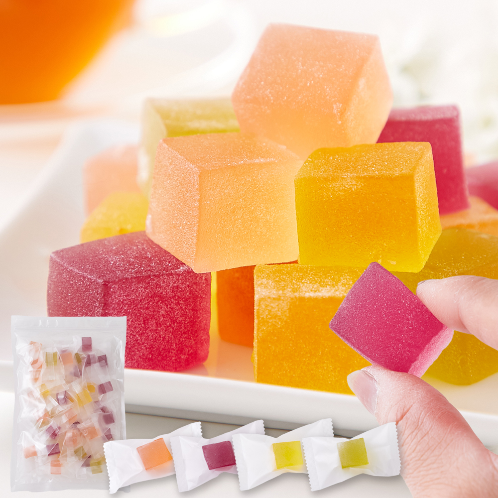 ・原材料名:砂糖(韓国製造、又はタイ製造)、水あめ、澱粉加工品、レモンソース(水あめ、砂糖、レモン果実、レモン外皮)、コラーゲンペプチド、ル・レクチエ果汁、濃縮もも果汁、濃縮ぶどう果汁/ソルビトール、ゲル化剤(ペクチン)、酸味料、乳化剤、香料、着色料(クチナシ、 ペニコウジ)、(一部にもも・ゼラチンを含む)