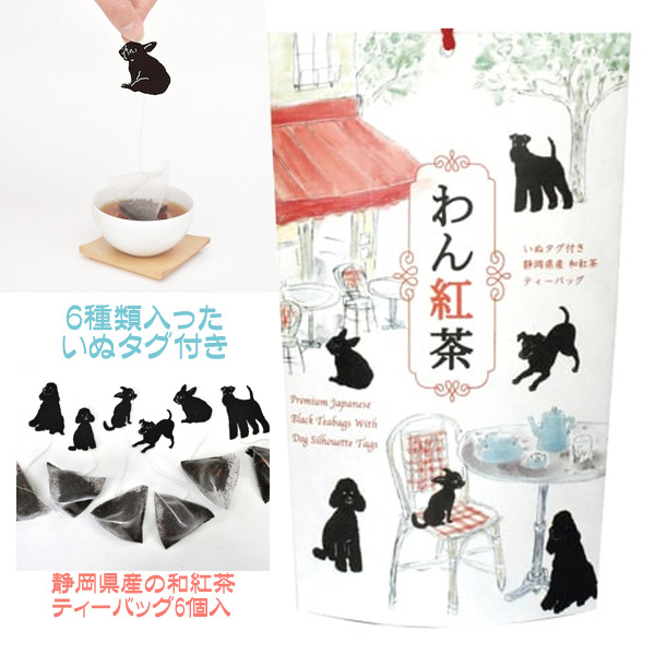 山壽杉本商店 わん紅茶 ティーバッグ(ティーパック) 和紅茶 人気 癒し 犬アイテム イヌ グッズ ドッグ 和のプチギフト おしゃれ イヌタグ付き いぬ紅茶 静岡県産 和紅茶 ワンちゃんのシルエットが かわいい ティータイムの癒しグッズ、犬好きの人に、6種類の犬がキュート 退職 お礼 挨拶 お返し お祝い プチギフトにもおすすめ