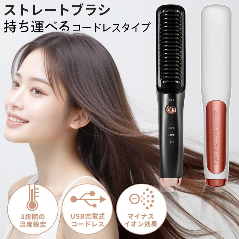 ヘアブラシ ストレートブラシ ヒートブラシ ホットカーラー マイナスイオン ヘアアイロンブラシ コードレス USB充電式 頭皮ケア 髪 プレゼント 母の日 ギフト