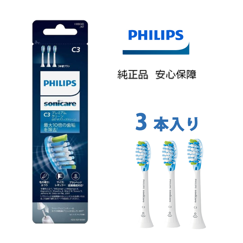 PHILIPPS フィリップス ソニッケアー HX9043/96 替ブラシ プレミアムクリーン 歯垢除去 レギュラーサイズ ブラック 3本組 純正品 正規品 HX9043/96 3本組 C3