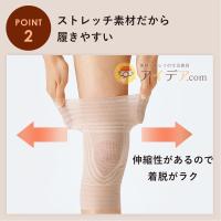 [使用上のご注意]●本品は医療用具ではありません。●高血圧の方や妊娠中の方、現在医師の治療を受けている方は、ご使用前に医師にご相談ください。●キズ、はれもの、湿疹などお肌に異常のあるときは使用しないでください。●ひざ以外の部位には使用しないでください。●ご使用前に必ず『装着方法』をよく読み、正しく装着してください。●鋭利なものなどでひっかけないようご注意ください。●装着の際は爪やアクセサリーで引っかけないようご注意ください。破れる恐れがあります。●商品の仕様上、内側に糸が少し出ている部分がありますが、絶対に切り取らないでください。破れる恐れがあります。●長時間使用する際や締まりすぎと感じる場合は、適度に着脱を繰り返してください。また、就寝時のご使用はお避けください。●使用中、使用後に異常を感じた場合は使用を中止してください。●洗濯機の手洗いモードでは洗えません。●この商品は洗濯により収縮する恐れがありますので形を整え陰干ししてください。●火気に近づけないでください。●本来の用途以外には使用しないでください。●使用感には個人差があります。