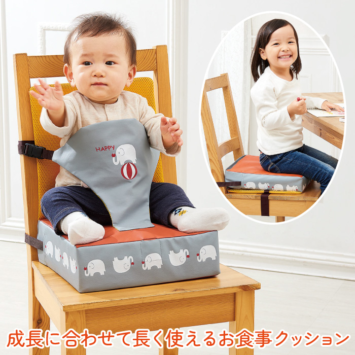 椅子を買い換える必要なし!お子様の成長に合わせて長く使えるクッション ホールドベルト付お食事クッション エレファント