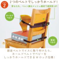 場所もとらず取り付け簡単!普段お使いの椅子に取り付けるだけのベビー用お食事クッション♪固定ベルトでイスに取り付けたら、ホールドベルトでベビーをしっかりホールドできるWロック仕様で安心ですね。