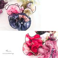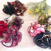 オーガンジー花柄シュシュ サテン ボリューム 薔薇 ローズ フラワー 上品 エレガント チュール ヘアアクセサリー 髪留め ヘアゴム SU-19