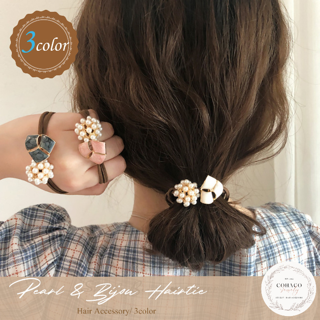 パールビジューヘアゴム トライアングル ヘアアクセサリー シュシュ 髪留め おしゃれ 人気 大人 かわいい HG-16