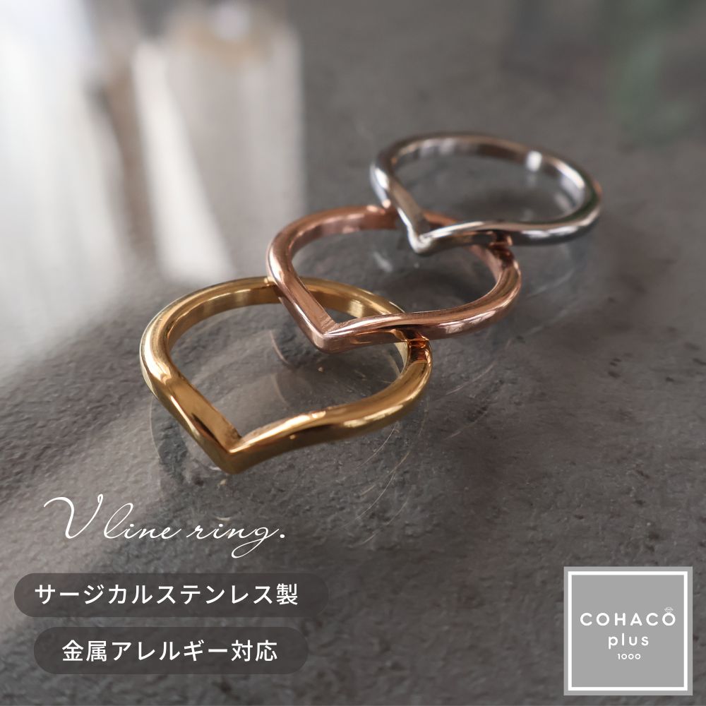 1000円均一アクセサリー V字リング 指輪 サージカルステンレス 18金 アレルギー対応 18K つけっぱなし 316L 安い お得 千円 レディース おしゃれ R-109