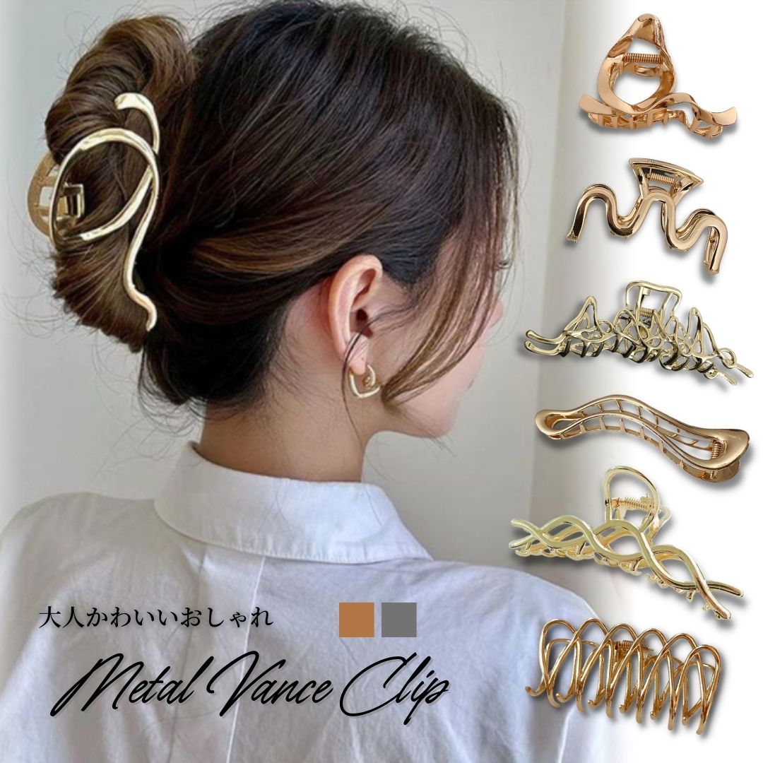 メタルバンスクリップ 選べる16種類 大人 かわいい ヘアクリップ 艶 ゴールド シルバー カーブ ヘアアクセサリー まとめ髪 多毛 大きめ CR-36