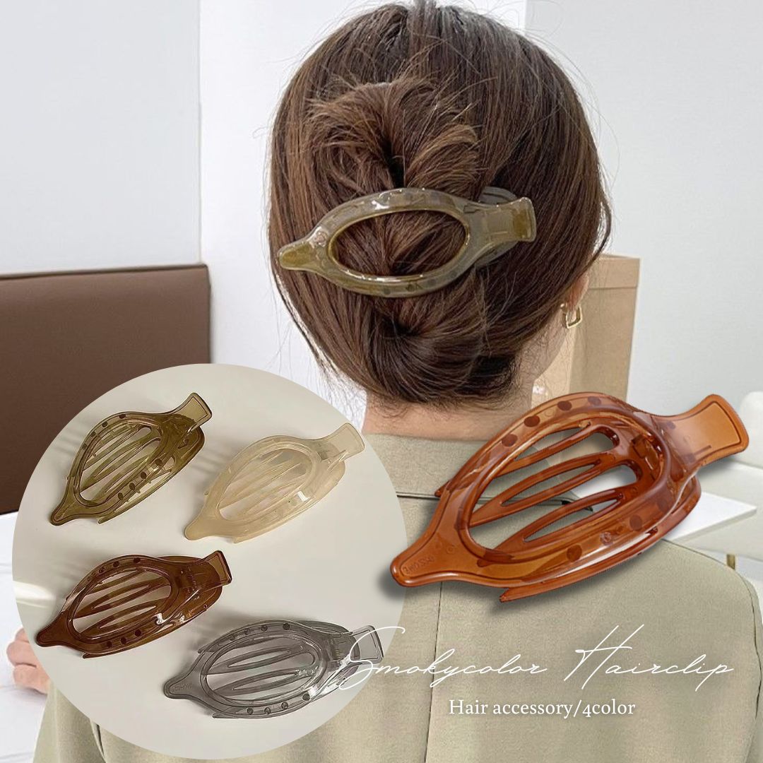 バンスクリップ ヘアクリップ くすみカラー べっ甲 横開き リング スモーキーカラー ヘアアクセサリー まとめ髪 多毛 大きめ ビッグ CR-59