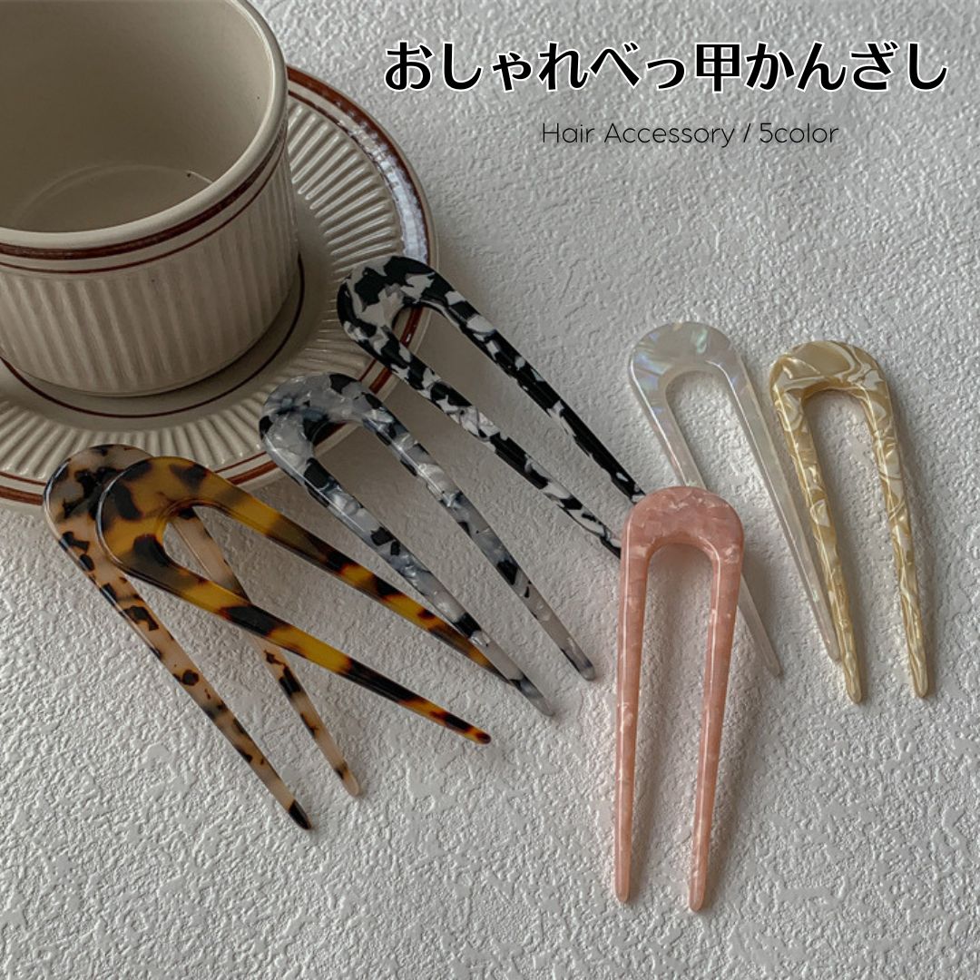 【商品説明】おしゃれなべっ甲柄が大人可愛い!U字型のかんざしで髪の毛をまとめやすい◎日常のおしゃれにも着物などの和装にもどちらにも活躍できるおしゃれヘアアイテムです。