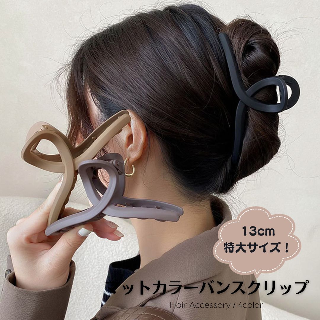 【商品説明】トレンドのマットカラーが大人かわいいバンスクリップ。特大13cmサイズで髪の毛をしっかりキャッチ!多毛さんにもおススメです♪