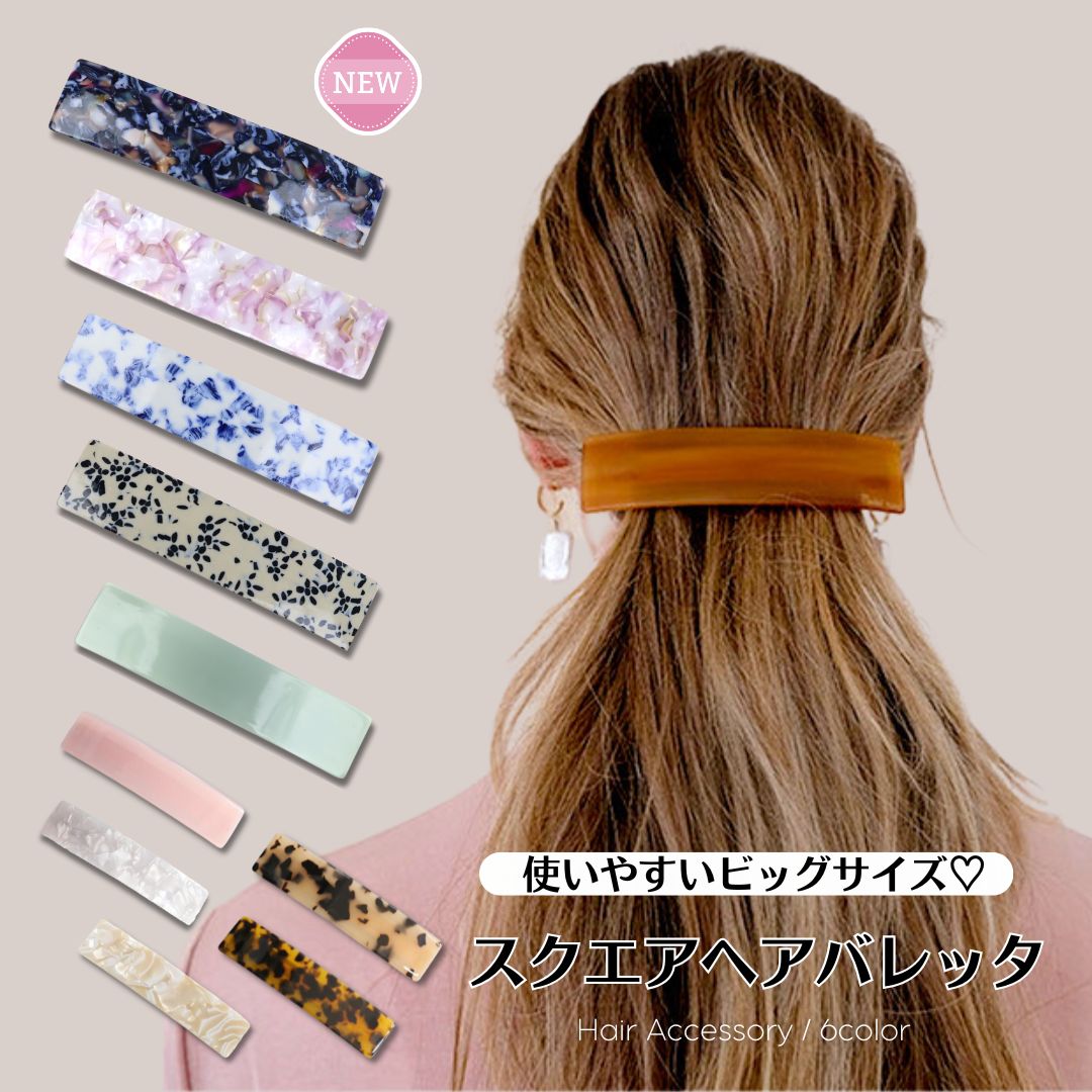 【商品説明】大きめ10cm存在感抜群のヘアバレッタ。高級感たっぷりのおしゃれな6種類のべっ甲柄がコーディネートの主役級のアクセントに♪