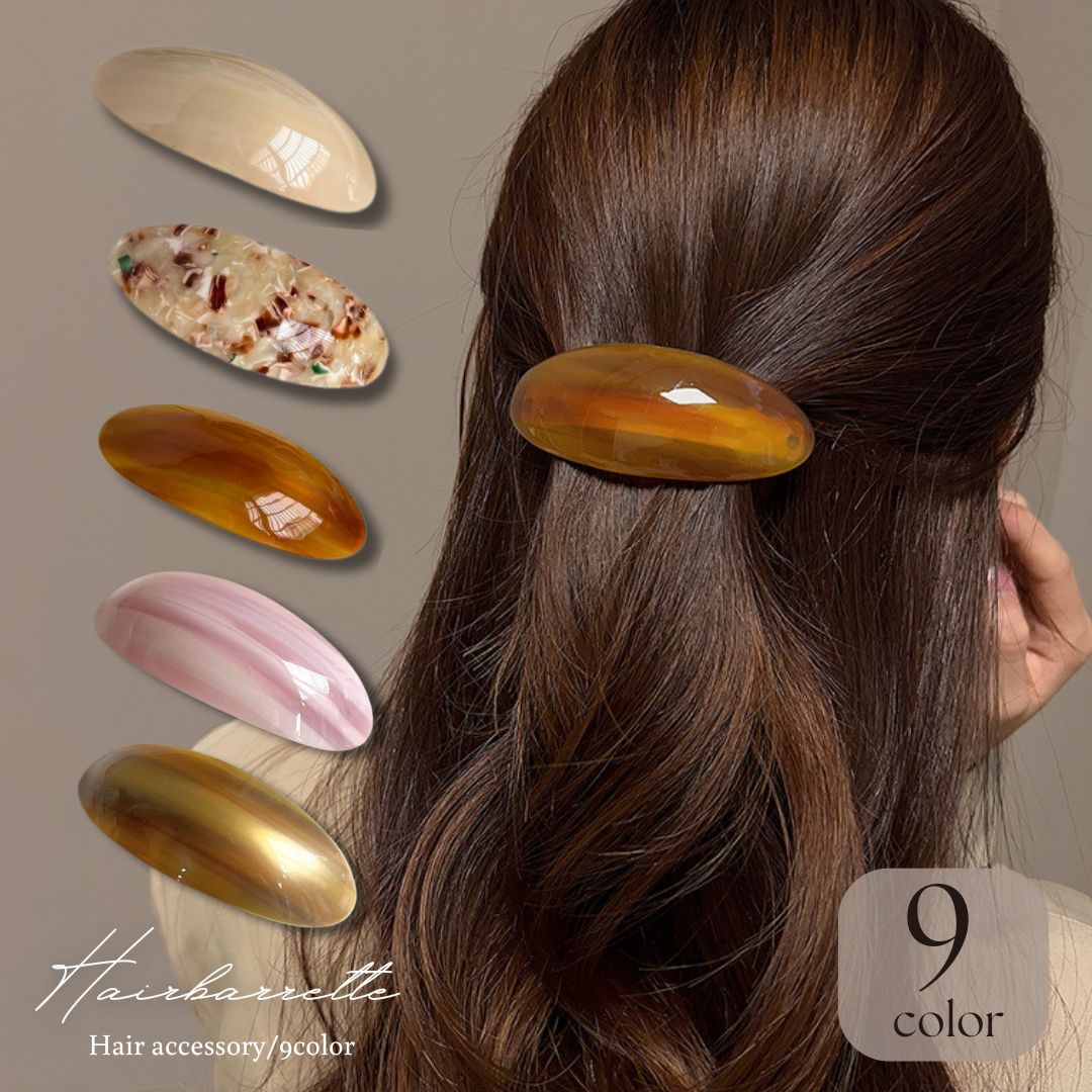 【商品説明】大きめの楕円型が大人可愛いヘアバレッタ。緩やかにカーブした形が通常のものよりも髪の毛をたっぷり挟めるので多毛さんにもおススメです♪