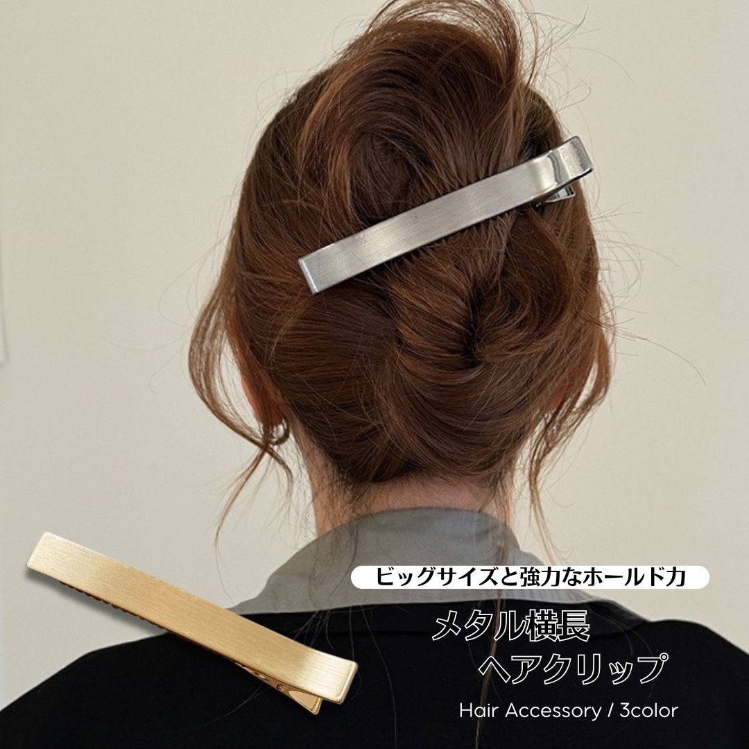 ヘアクリップ ダッカール ビッグサイズ くちばしクリップ ヘアアクセサリー メタル素材 艶消し ゴールド シルバー 横長 まとめ髪 多毛 大きめ CR-138