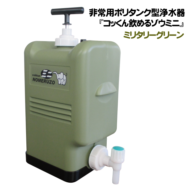 製造元直販|コッくん飲めるゾウミニ|ミリタリーグリーン|防災|ポリタンク型非常用浄水器|キャンプ・サーフィン・海水浴など普段使いも