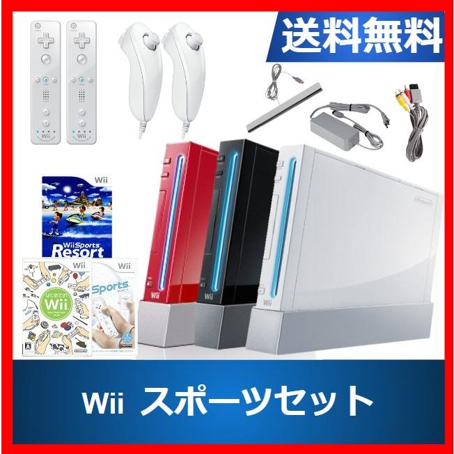 Wii 本体 2人でスポーツセット 選べる3色 シロ クロ アカ お得セット 送料無料 中古
