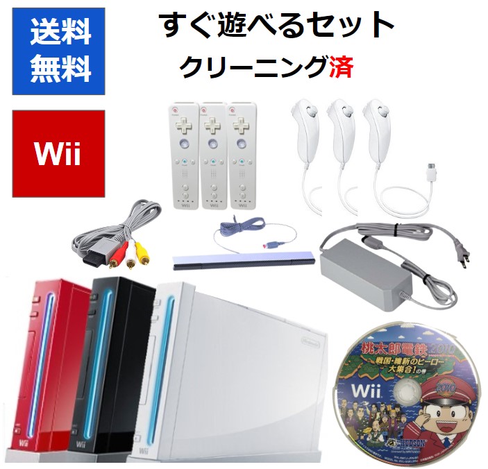 Wii 本体 すぐに遊べるセット 3人で遊べる 桃太郎電鉄2010 リモコンヌンチャク 選べる3色 シロ クロ アカ 任天堂 中古