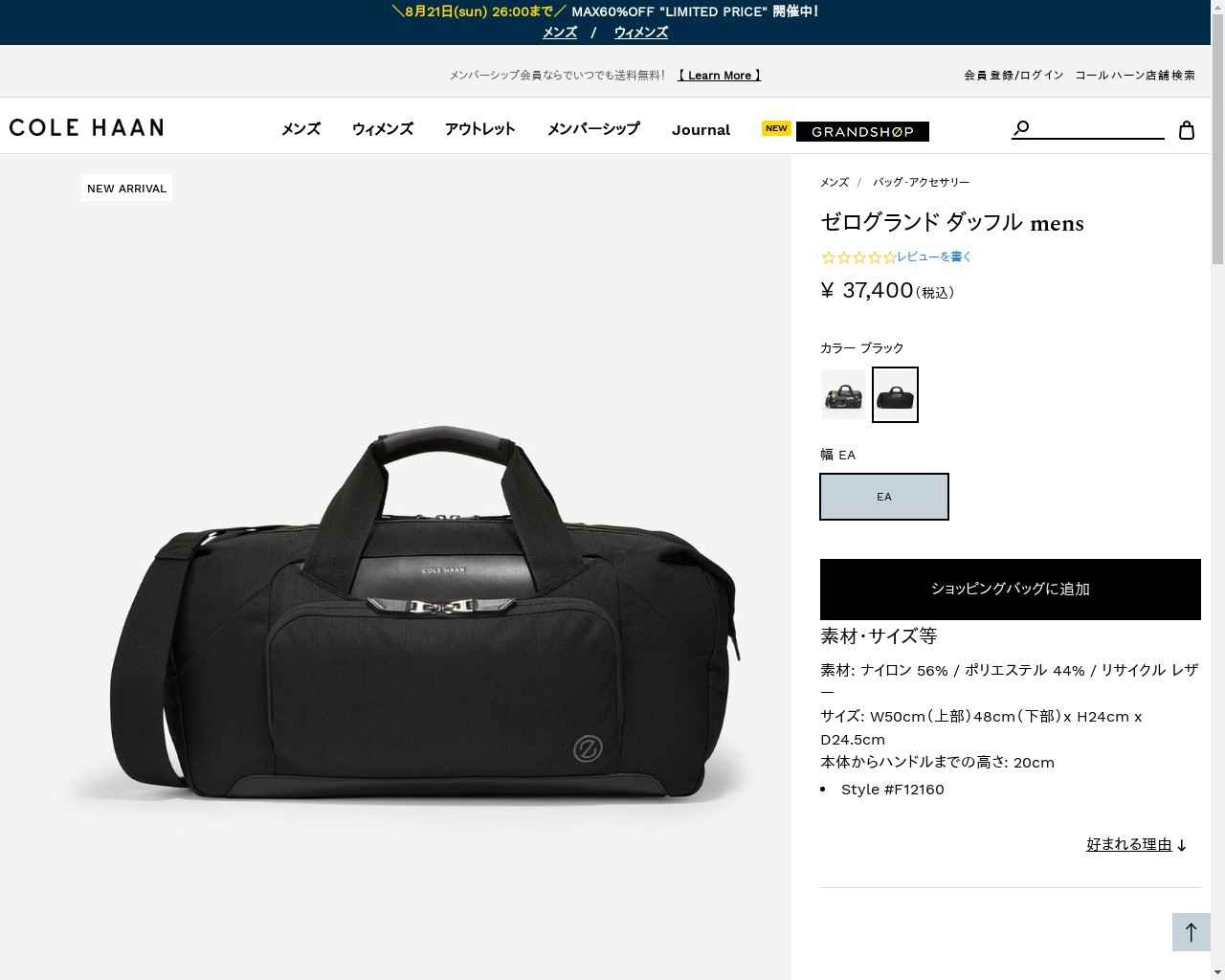 コールハーン Colehaan ゼログランド ダッフル mens F12160 ブラック
