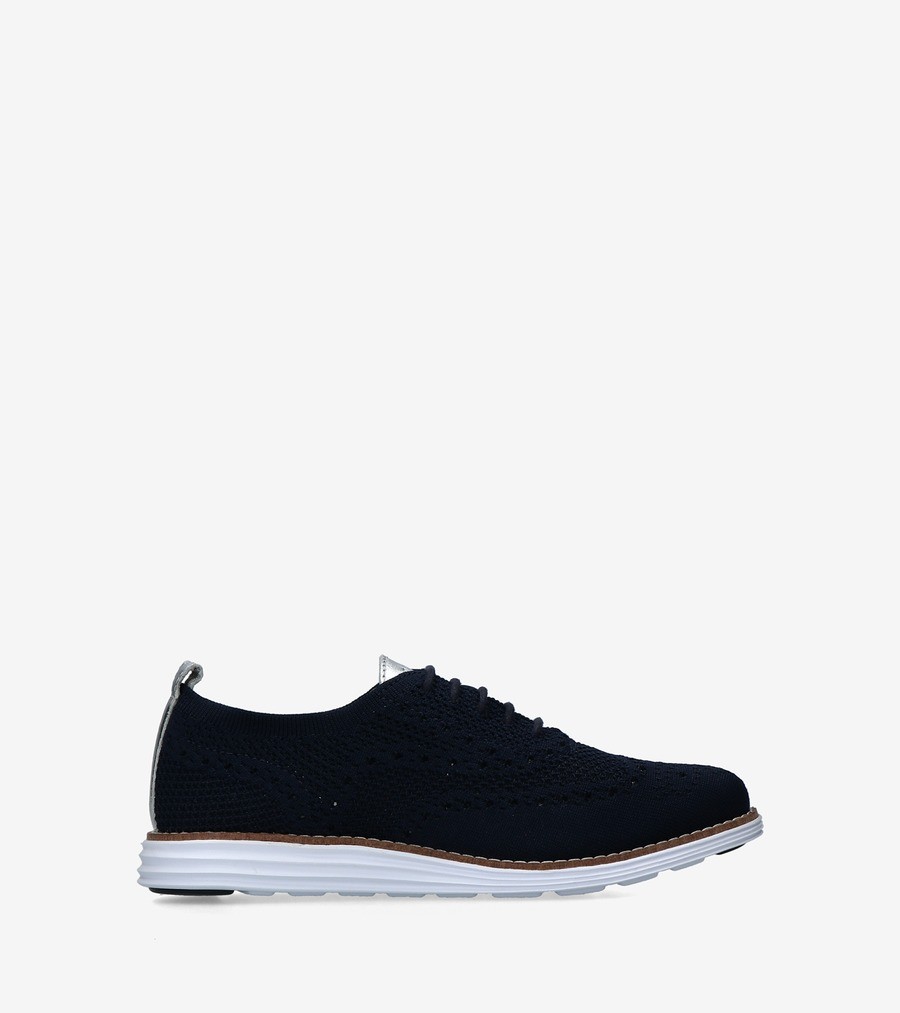 ウィングチップやメダリオンをニット素材で表現したオックスフォードシューズ。メタリックカラーのレザー使いもエレガントな足元を演出。アッパーが抜群の通気性を保ち、低反発性のある軽量化されたオリジナルグランドテクノロジーで軽やかな履き心地をもたらします。