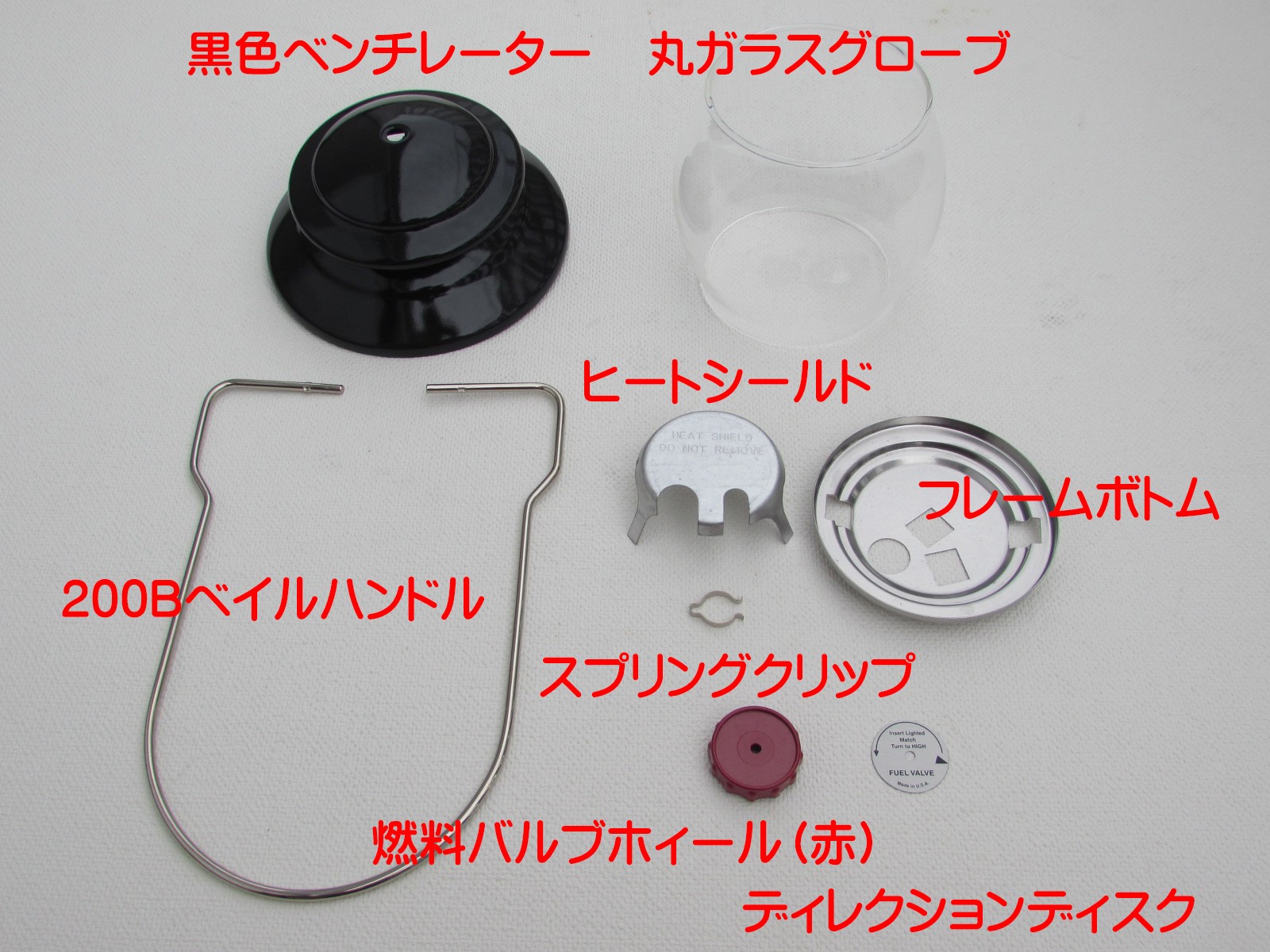 本セット品を装着するには燃料バルブホィールを固定する「スクリュー」、およびフレームボトム、バーナーフレームを固定する「Uクリップ」は流用してください。