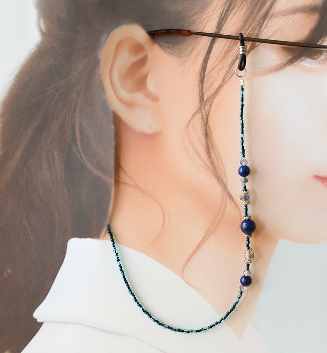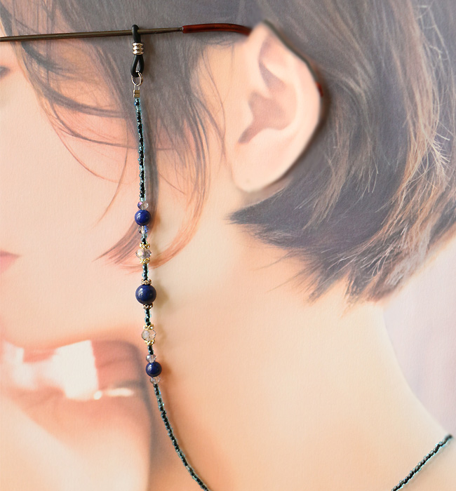 ラピスラズリ(天然石染色)を使用したメガネチェーンです!