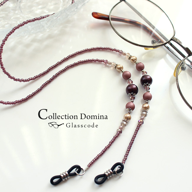 ボルドーの8mmコットンパールがアクセントの当店オリジナルデザインのビーズ眼鏡チェーン。上品でフェミニンな色味が高級感を演出します。