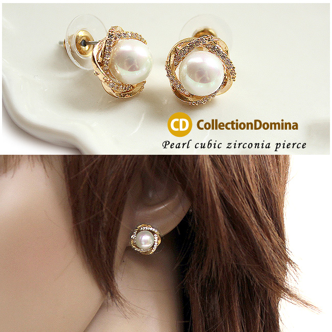 パールデザインピアスです。キュービックジルコニア×パールの組み合わせ!