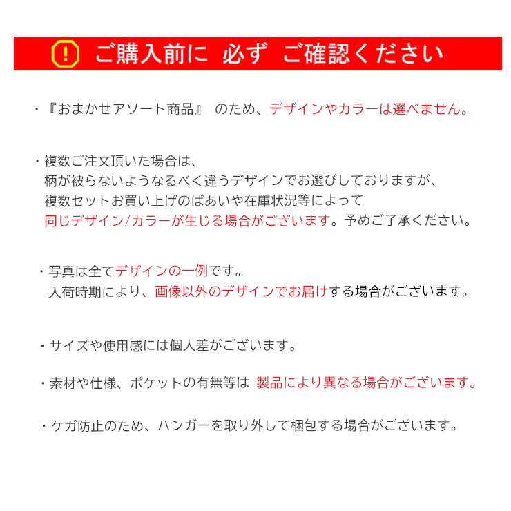 おまかせ(アソート)販売となりますので、デザインとカラーのご指定はいただけません。