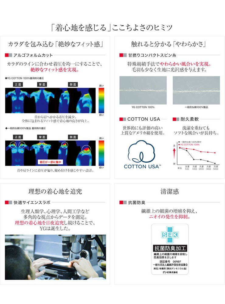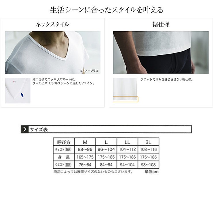 ■特徴:グンゼYGのVネックスリーブシャツです。