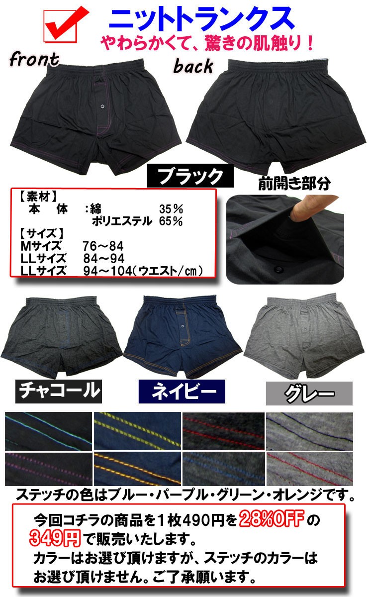 ■特徴:コチラの商品は、実店舗でも好評な、定番的なボクサーブリーフとニットトランクスです。今回、パッケージの変更の為、お値打ち価格にて販売いたします。カラーはお選びできますが、ステッチの色に関しては、お選びできません。この価格ですのでご了承くださいませ。