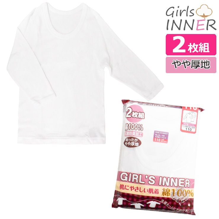 キッズ ジュニア 女の子 8分袖スリーマ 2枚組 綿100% 女の子 インナー 子供 インナー 長袖 キッズ インナー 長袖 長袖インナー キッズ 女児 肌着 スクール 白 ホワイト (00707)