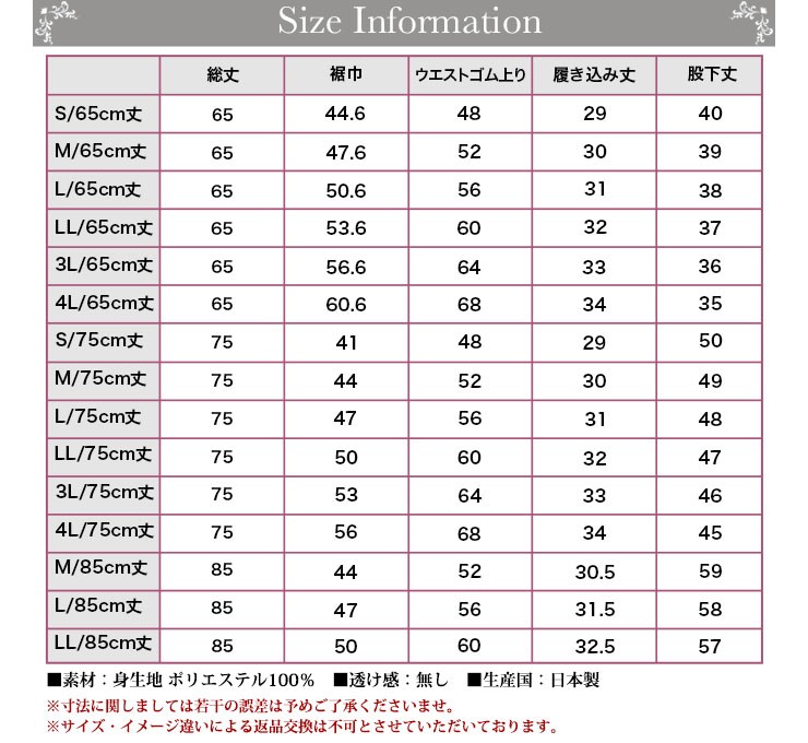 ■商品名:吸水速乾&静電防止効果ロングキュロット6645