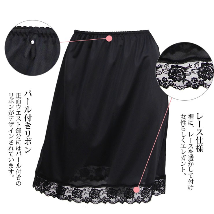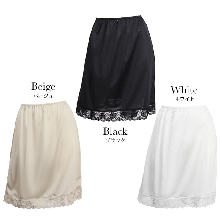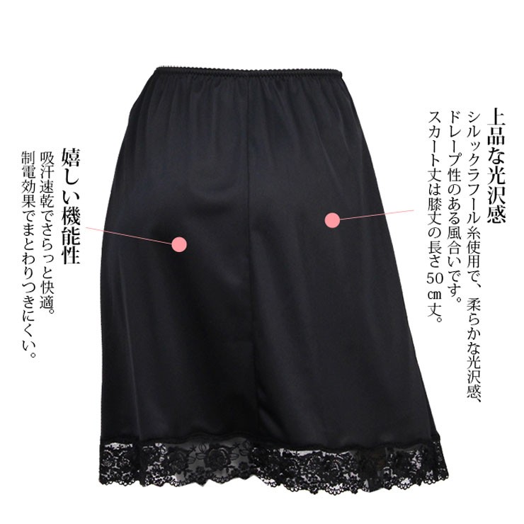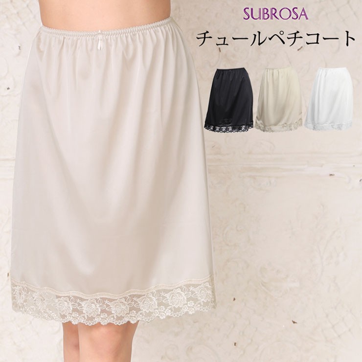 ペチコート レース スカート 50cm丈 SUBROSA 4558 レディース ランジェリー インナー ぺチパン 浴衣 透け防止 静電気防止 ベージュ 黒 日本製 M L LL (03605)