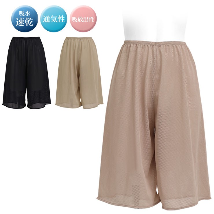 ロング キュロット ペチコート 夏 メッシュ スカート タップパンツ 婦人下着 ぺチパン 涼しい 浴衣 透け防止 ベージュ 黒 通気性 涼しい メッシュ編み 夏インナー サブローザ subrosa
