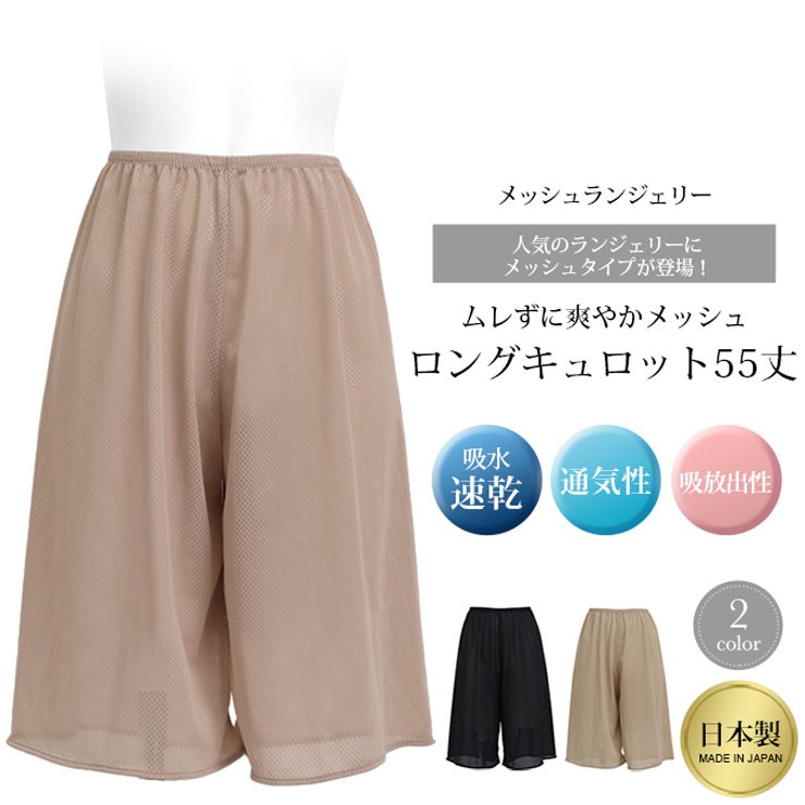 ロング キュロット ペチコート 夏 メッシュ SUBROSA 7522 55cm丈 スカート タップパンツ 婦人下着 ぺチパン 涼しい 浴衣 透け防止 ベージュ 黒 通気性 涼しい メッシュ編み 夏インナー サブローザ subrosa (03629)