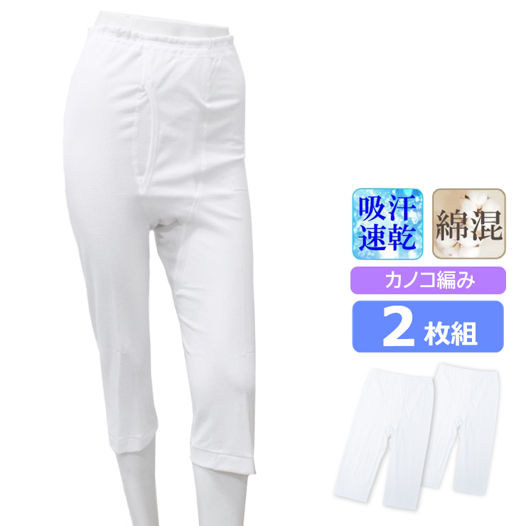 メンズ DRYカノコ 吸汗速乾 ロンパン 13-044 2枚組 送料無料 ドライ dry ズボン下 ハーフ ひざ下丈 紳士 メンズ 下着 鹿の子 涼しい 夏 セット ドライ シャリ感