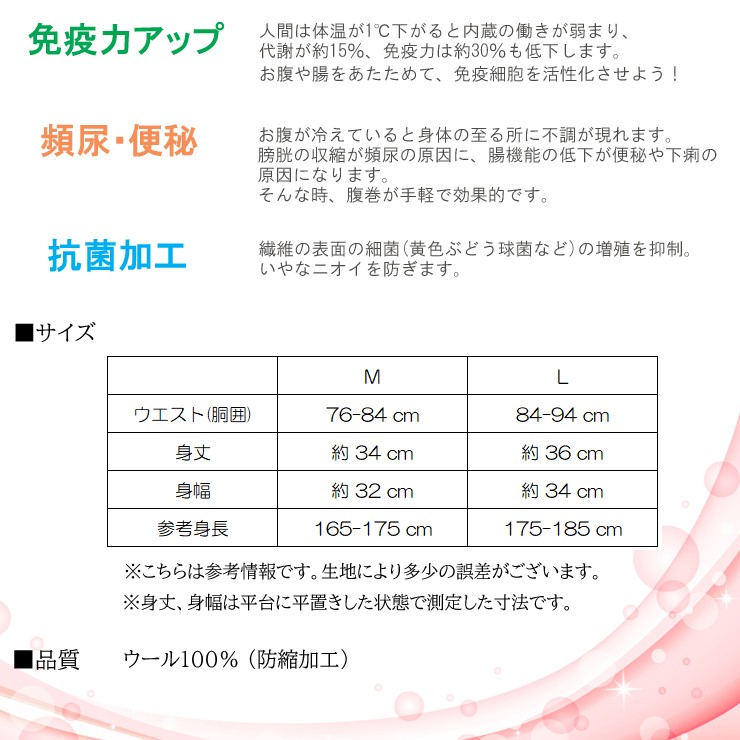 男女兼用 腹巻 ウール 腹巻き 防寒 寒さ対策 温活
