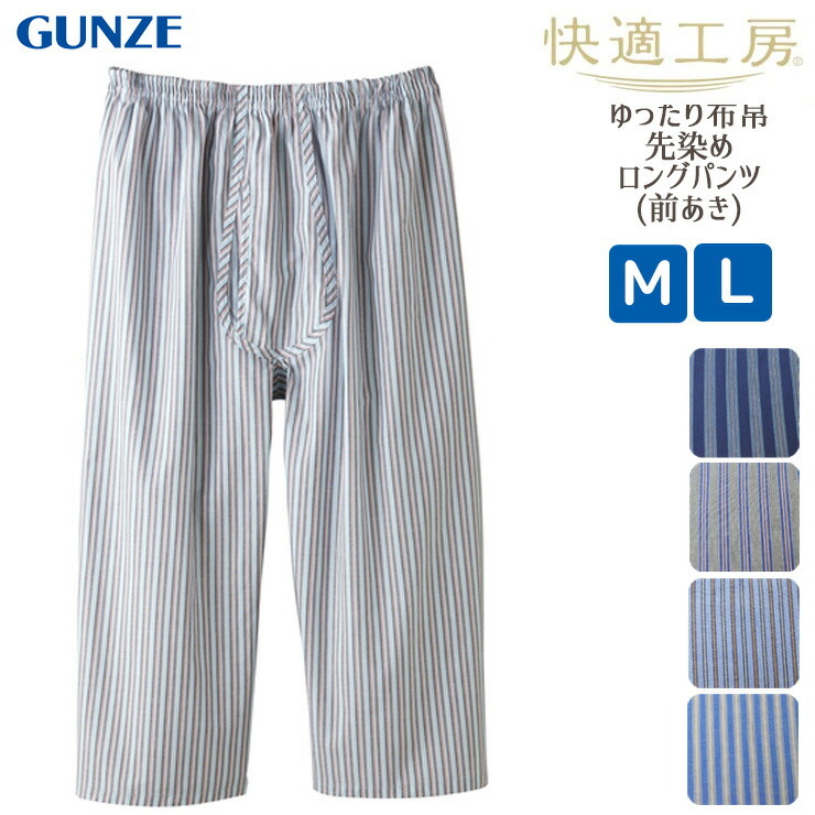 メンズ GUNZE 快適工房 綿100% 先染め ロングパンツ 前あき ? KH1102 デザインおまかせ 単品