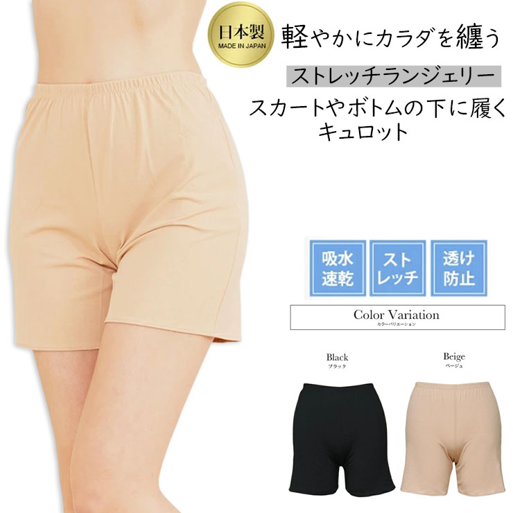 レディース SUBROSA 軽やかにカラダを纏う 35cm丈 キュロット P310SR 送料無料 無地 ストレッチ ペチパンツ タップパンツ インナー 透けにくい 透け防止 吸水速乾 ベージュ 黒 ランジェリー アンダーウェア 下着 肌着 (06246)