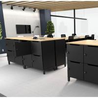 沖縄 離島へは配達不可です。北海道等一部地域は別途送料が必要です。個人宅への配達は不可です。法人名かお店の名前が必要となります。個人事業主様でも大丈夫です。基本的に車上渡し。画像は複数並べた設置例ですが販売単位は1個(2列2段)単位です。本体69980円。扉の中に棚板を付けたい方はオプションで棚板1枚6500円で別途販売可能。サイズ幅1000奥行500高1000mm。鍵付き(ダイヤル錠)。本体 扉 メラミン木質ボード、PVCエッジ。脚部スチール(粉体塗装)。アジャスター PP。木製ロッカー(4人用)です。高さはハイカウンター同等のH1000mmでスモールオフィスにも圧迫感なく設置可能。各ロッカー内寸はW471D438H403mmと大容量で手荷物から書類まで豊富に収納可能。内部には別売オプション棚板の追加も可能。取り付け位置は7段階から選べ用途に応じて調整可能。扉には3桁のダイヤル錠を装備。鍵を持たずに施錠解錠できセキュリティ管理が容易。扉上部にはスリットがあり開閉や書類の受け渡し等に利用できます。天板は配線切り欠き付きで壁付けや背合わせレイアウトにも対応。間仕切りとしても利用可能。お客様組立商品。重量約55kg。耐荷重天板約30棚板約10底板約30kg。