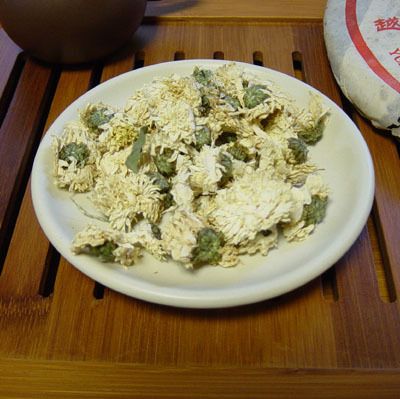 黄山の「菊」を乾燥させたものです。もちろんそのままお茶として飲まれてもいいのですが、特にプーアル茶との相性がよく、一緒に愛飲されてきました。普通のプーアル茶に「菊」をまぜれば「菊花プーアル茶」の完成です。