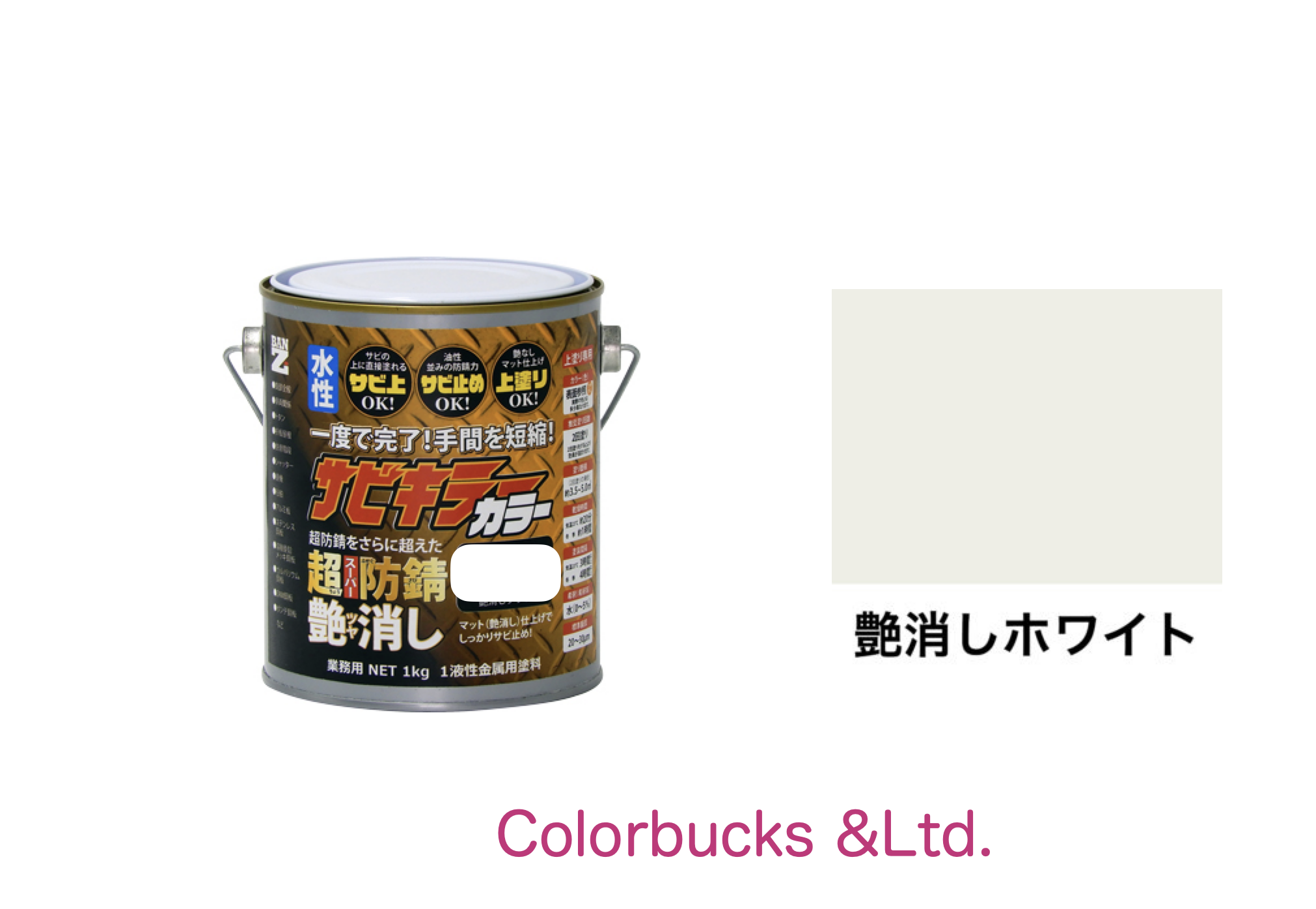 サビキラーカラー 艶消し つや消しホワイト 白 1kg 水性防錆塗料 BAN-ZI