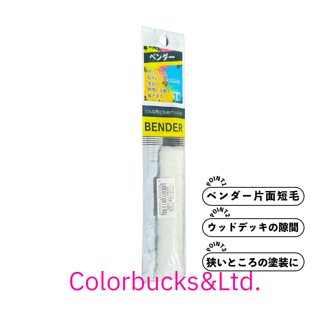 ローラーでは塗りにくい狭いところや、手の届きにくい部分の塗装に最適なベンダー。薄いフラットなスチールに特製織布を接着した、小型で便利な塗装具です。塗面に合わせどんな形にも曲げて使用できます。