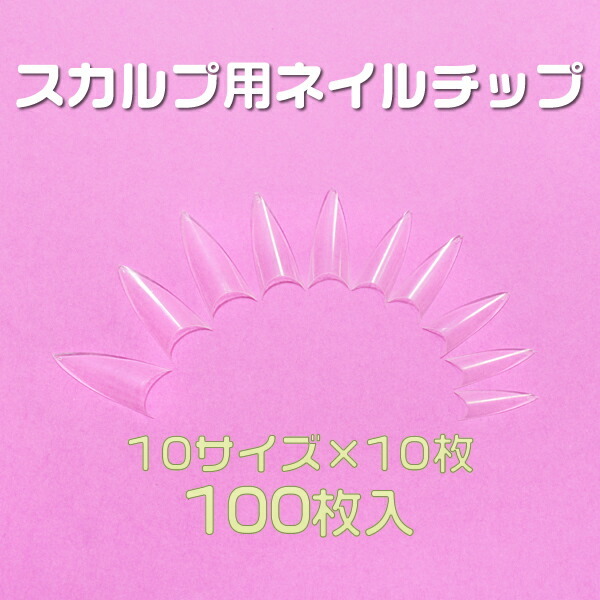 ネイルチップ シャープポイント 先端が尖ったネイルチップ10サイズ100枚 クリア ケース入 #c5