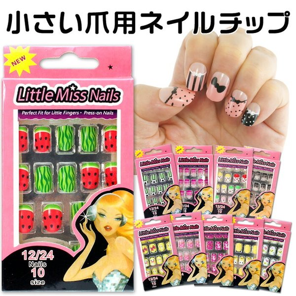 SALE価格 小さい爪用ネイルチップ 貼るだけ キッズネイル デザイン済みネイルチップ 裏側にネイルグルーつきネイルシールより簡単 子供用付け爪 ベリーショート