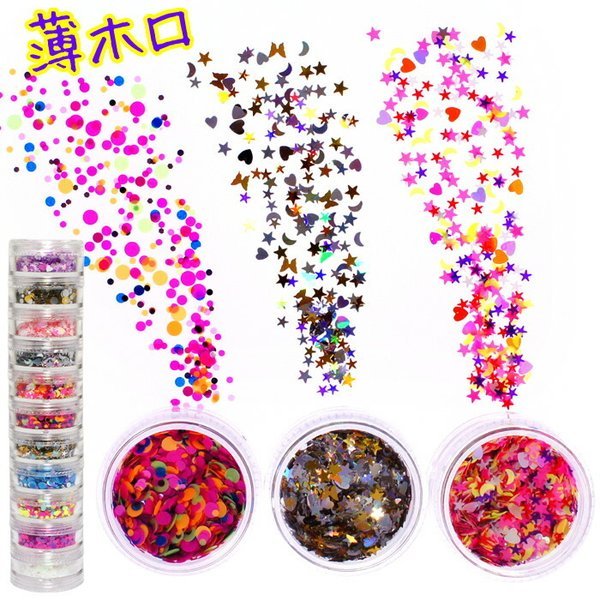 ネイル ホログラム ミックス カラフル 丸ホログラム バタフライ 月 星 ハート など スタッキングできる便利グッズ ジェルネイル レジンパーツスパンコール