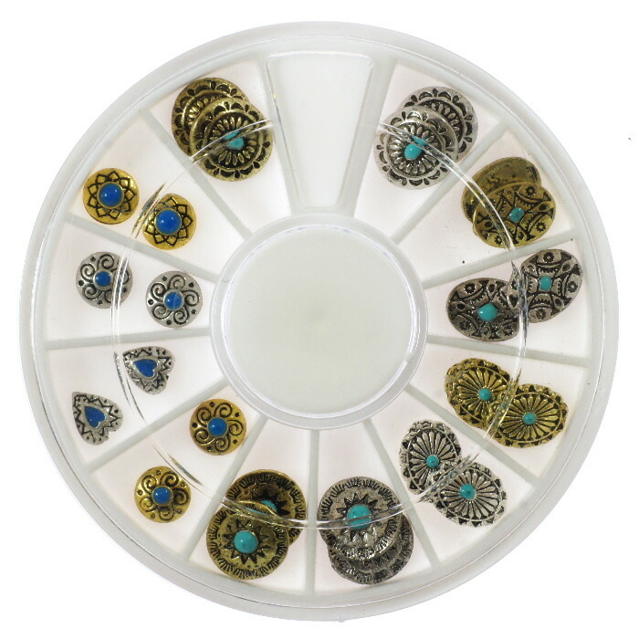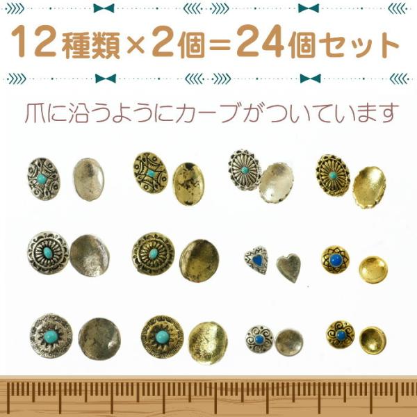 ネイルパーツ コンチョ風ネイルジュエリー 12種類2個セット ボヘミアンエスニックネイル 3Dメタルパーツアンティークメタル コンチョパーツ手芸 レジンパーツ