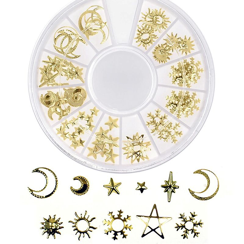 宇宙のメタルパーツ 星 太陽 月 スタッズ 3Dメタルパーツ 5mm〜10mm 大量激安のネイルパーツ ゴールド レジンパーツ レジン封入ネイルジュエリー