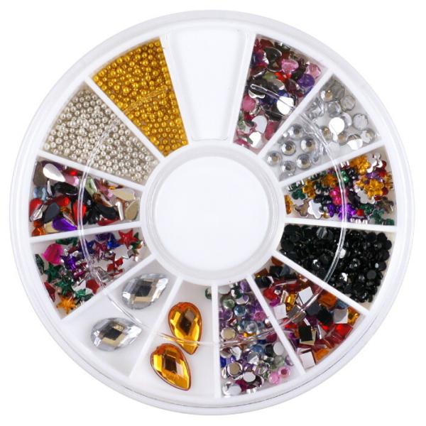 ネイル 人気の形ミックスラインストーンセット 四角 長方形 ドロップ お花 ハート 星 三角 リーフ ブラックなどジェルネイルアートに